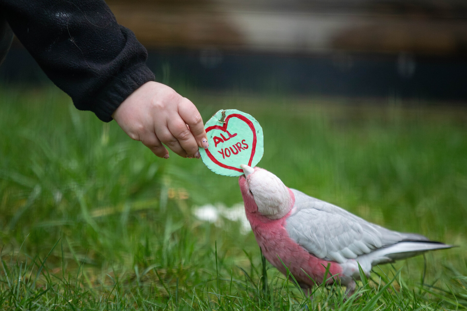 RZSSMeanwhile, the zoo’s galah cockatoos, Bingo, Shrimp, Opal, Timtam and Barbie, tried to take a nibble out of their love notes.