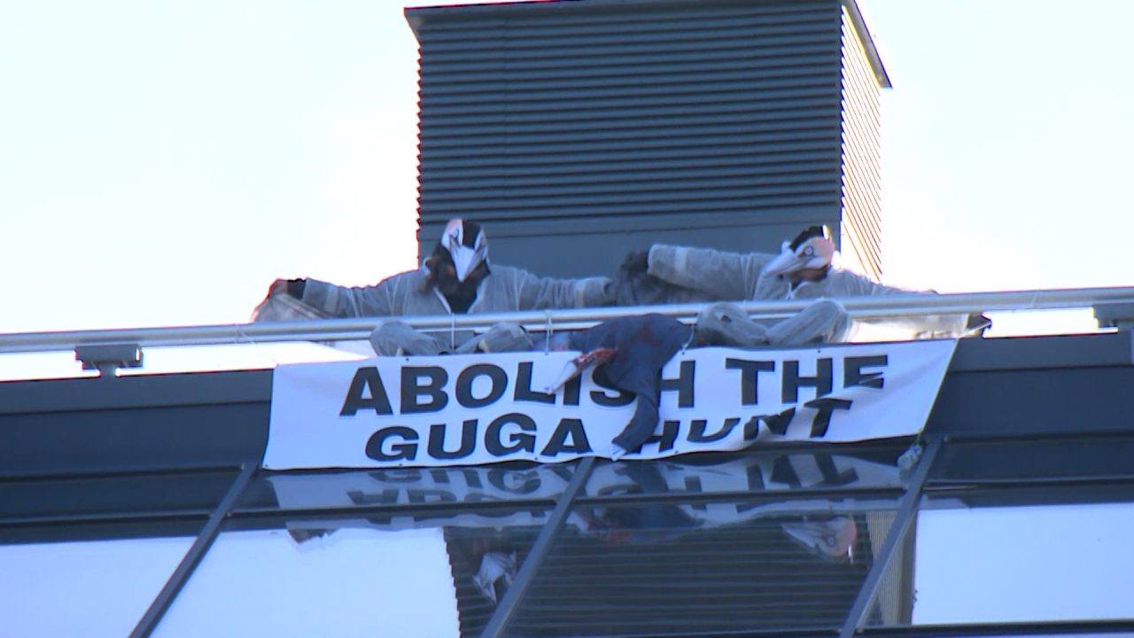 Animal rights activists are staging a rooftop protest at Government agency NatureScot in Inverness as they campaign for the abolition of the Guga hunt.