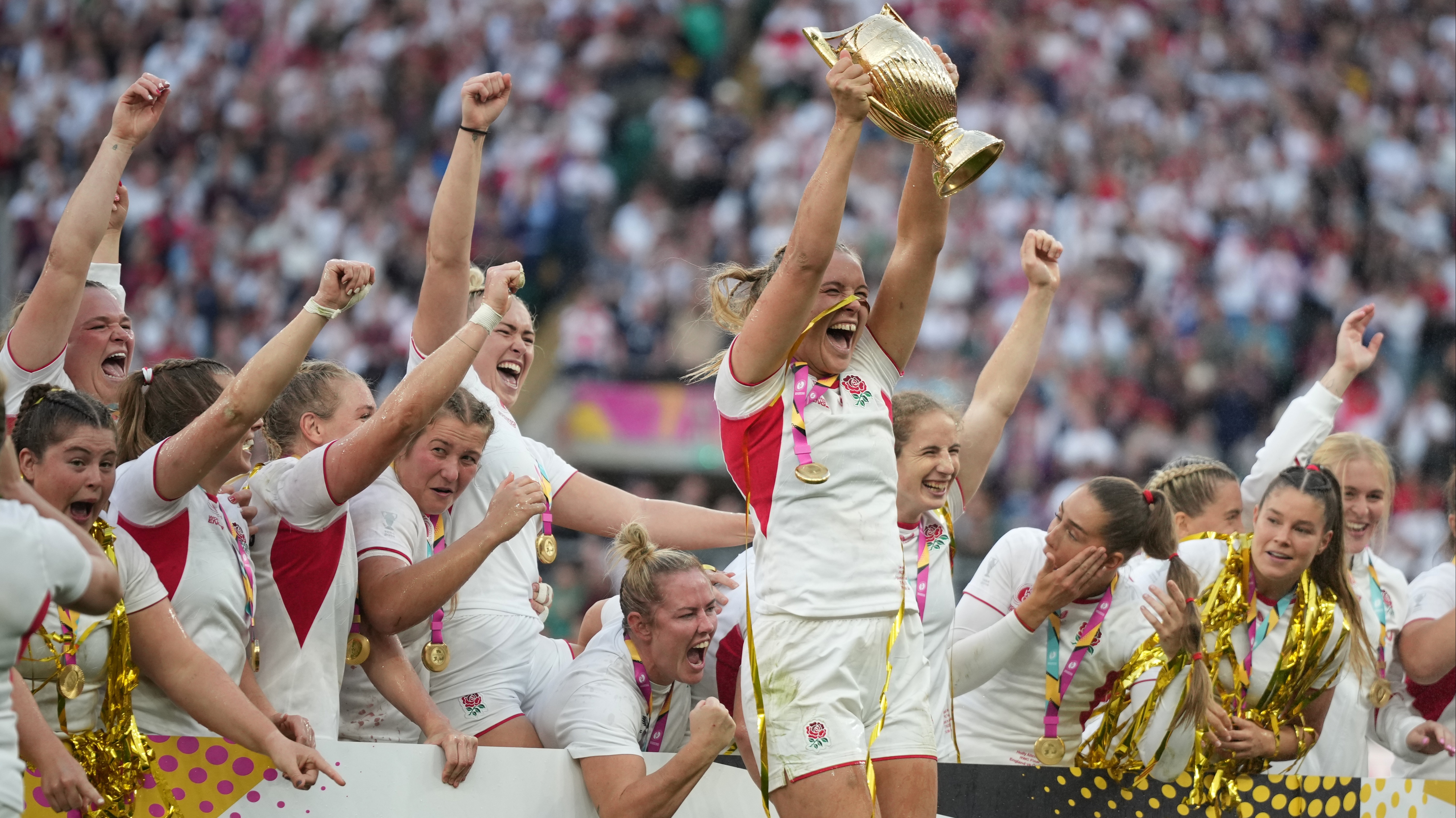 The Red Roses had reached the last six finals yet won only once, but on this occasion they held their nerve in front of a sold-out Twickenham Stadium, the largest ever in women’s rugby history.