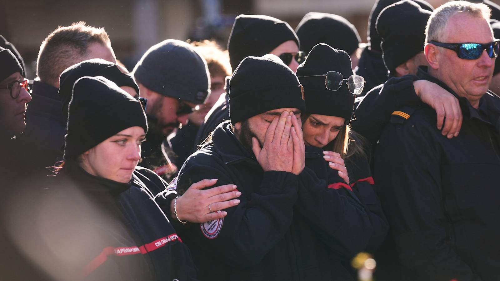 Mourners cry as they attend a memorial march in Crans-Montana. / Credit: AP